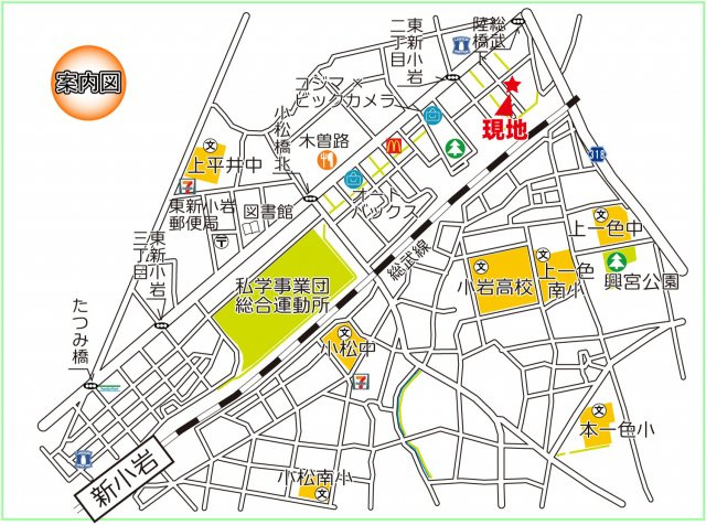 総武線「小岩」駅 徒歩19分 総武本線「新小岩」駅 徒歩22分 |