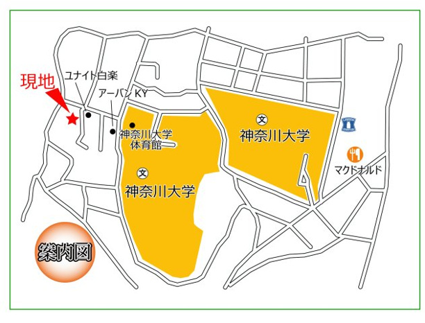 東急東横線「白楽」駅 徒歩17分 ブルーライン「三ツ沢下町」駅 徒歩17分 |